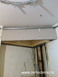 Начинаем закрывать гипсокартоном сделанный новый каркас.