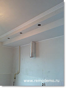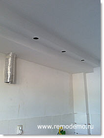 Шпаклюем и красим потолок. Затем устанавливаем светильники.