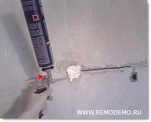 Если вы перенесли с одного места на другое розетку или выключатель, то чтобы заделать старое отверстие, воспользуйтесь пеной.