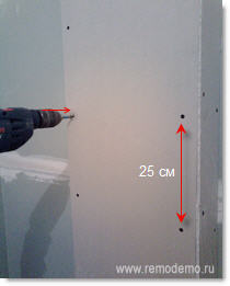 Теперь отрежьте новый профиль, по высоте ванны. Прикрепите этот профиль саморезами к внешнему краю гипсокартону, с помощью шуруповерта.
