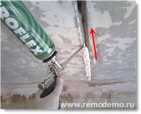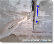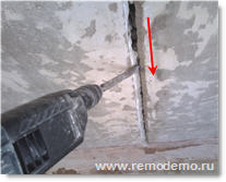 Расширьте шов с помощью перфоратора. В качестве наконечника используйте специальную лопатку из набора.