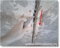 Этот способ пригодится вам, для быстрой заделки швов (рустов) между потолочными плитами, например перед оклеиванием потолка обоями. Если потолок будет полностью выравниваться шпаклёвкой и краситься, то примените другой способ, который описывается здесь.