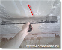 Через 40 минут с помощью широкого шпателя нанесите второй слой новой приготовленной смеси. После высыхания шва, загрунтуйте и зашпаклюйте весь потолок.