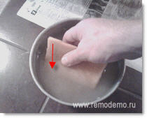 Возьмите обычную губку и намочите её в воде. Слегка отожмите.