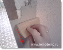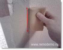 Проведите губкой по поверхности шпаклёвки, но не надавливайте. Старайтесь загладить неровности.