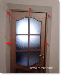 Не забудьте на дверной блок наклеить малярный скотч, чтобы не испортить облицовку.